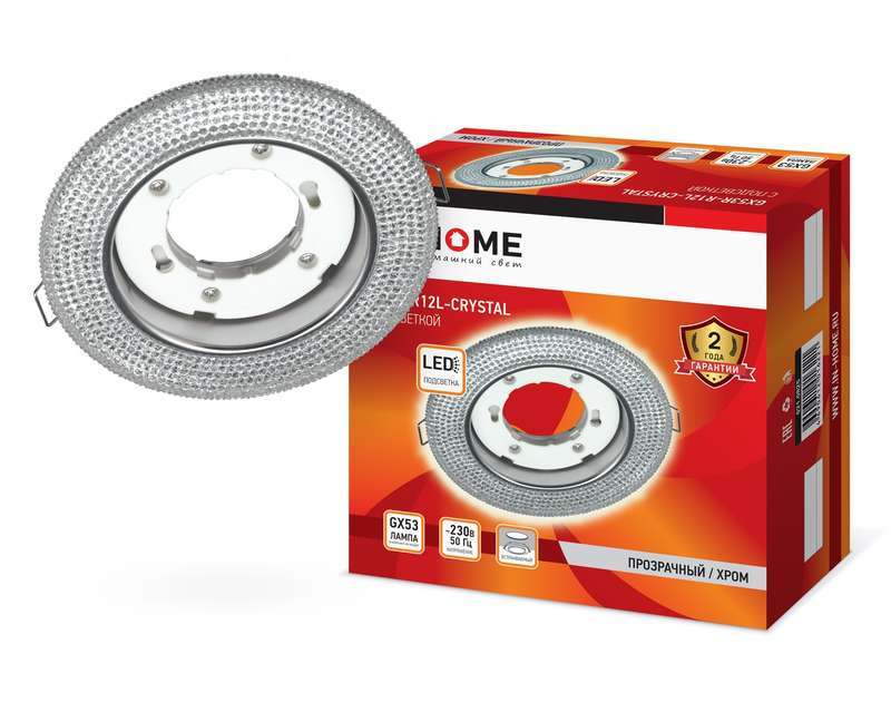 Светильник точечный GX53R-crystal R12L GX53 IP20 230В встраив. с подсветкой прозр./хром. IN HOME 4690612016221