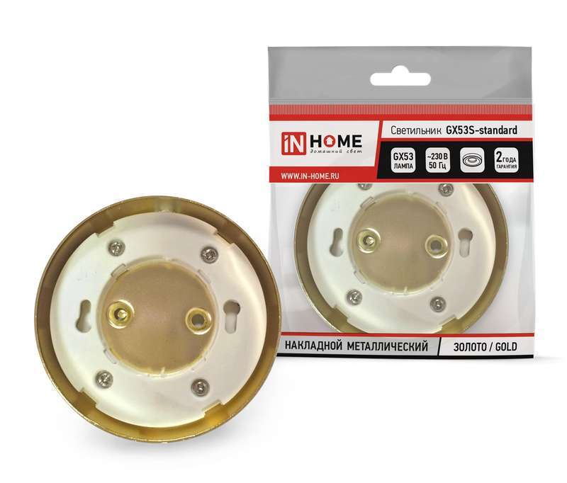 Накладной настенно-потолочный светильник ТМ In Home серии GX53S- standard может работать со светодиодными лампами GX53 мощностью от 4.2 Вт до 10 Вт. Линейка встраиваемых светильников GX53S-standard представлена в золотом, хромированном и белом вариантах корпуса. Модель проста в монтаже, подходит для установки в подвесные и натяжные потолки, подсветки мебели (например, кухонной зоны, шкафов-купе), витрин и т.п. Может применятся для общего и декоративного освещения интерьеров торговых, офисных, административных, жилых и других помещений. Материал корпуса светодиодного светильника – металл, который практически не нагревается в процессе эксплуатации. Не требует дополнительной теплоизоляции. Предназначен для работы в сетях переменного тока 230 В. Лампы в комплект не входят. Гарантия 2 года. Имеет сертификат ТР ТС (таможенного союза) EAC.
