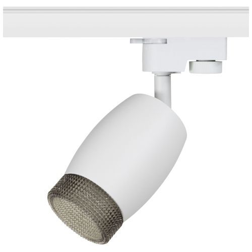 Однофазный трековый светильник под лампу с цоколем GU10. Светильник выполнен из алюминия и пластика. На передней части плафона находится пластиковое кольцо, стилизированное под хрусталь. Во включенном виде данное кольцо наполняется светом и создает превосходный визуальный эффект, а также оно выполняет функцию ограничителя угла рассеивания светового потока, снижая эффект ослепления светом.