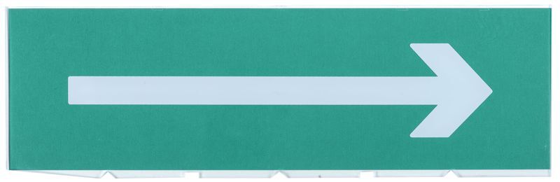 Сменное табло для охранно-пожарного оповещателя "Топаз". Состав: прозрачный пластик, бумага с зеленым фоном и указателем "Стрелка направо".