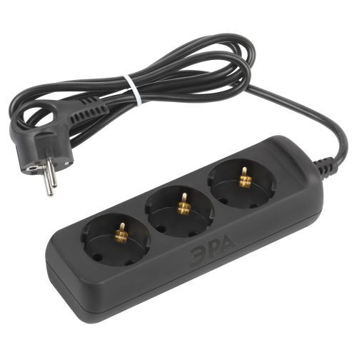 Удлинитель электрический Эра UX-3e-1,5m-B с заземлением, черный, 3 розетки. Провод ПВС, 3x0,75мм2, 1,5 м. Рассчитан на максимальную мощность 10А/2200 Вт. Удлинитель Эра станет Вашим надежным помощником, если Ваши любимые электроприборы находятся далеко от розеток. Провод в удлинителях Эра сделан из 100% меди, что делает его абсолютно пожаробезопасным. Корпус выполнен из ударопрочного и негорючего пластика (полипропилен). Вилка обеспечена кольцом для удобного извлечения ее из розетки. Модель удлинителя на 10А позволяет подключить бытовые приборы общей нагрузкой до 2200 Вт. Дизайн удлинителя разработан в России командой Эра Style.