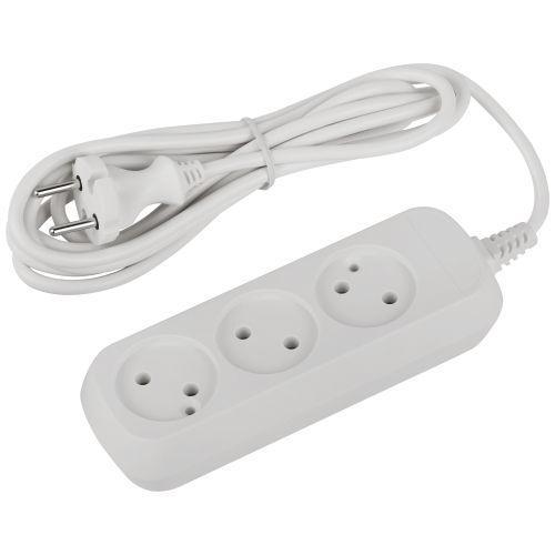 Удлинитель электрический Эра GREENLINE UDL-10-330 без заземления, на 3 розетки, провод 3м ПВС 2x0,75мм2. Рассчитан на максимальную мощность 10А/2200 Вт. Удлинитель станет Вашим надежным помощником, если любимые электроприборы находятся далеко от розеток. Корпус выполнен из ударопрочного и негорючего пластика (полипропилен). Модель удлинителя на 10А позволяет подключать бытовые приборы общей нагрузкой до 2200Вт.