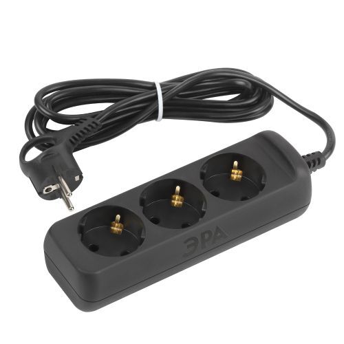 Удлинитель электрический Эра UX-3e-3m-B с заземлением, черный, 3 розетки. Провод ПВС, 3x0,75мм2, 3 м. Рассчитан на максимальную мощность 10А/2200 Вт. Удлинитель Эра станет Вашим надежным помощником, если Ваши любимые электроприборы находятся далеко от розеток. Провод в удлинителях Эра сделан из 100% меди, что делает его абсолютно пожаробезопасным. Корпус выполнен из ударопрочного и негорючего пластика (полипропилен). Вилка обеспечена кольцом для удобного извлечения ее из розетки. Модель удлинителя на 10А позволяет подключить бытовые приборы общей нагрузкой до 2200Вт. Дизайн удлинителя разработан в России командой Эра Style.