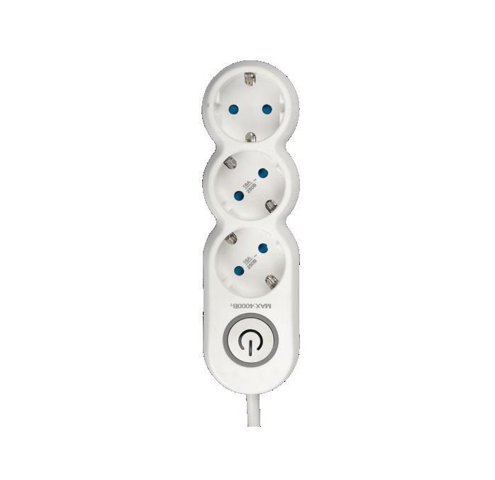 3 гнезда. Длина 3.0 метра. Провод ПВС 3х1мм2 с медной токопроводящей жилой. Ном.сила тока 16 А. Макс.нагрузка 4000 Вт. Заземляющий контакт. Выключатель. Упаковка - термоусадочная пленка с европодвесом.