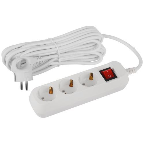 Удлинитель электрический Эра GREENLINE UDL-16-370-ES с заземлением, с выключателем, на 3 розетки, провод 7м ПВС 3x1мм2. Рассчитан на максимальную мощность 16А/3500 Вт. Удлинитель станет Вашим надежным помощником, если любимые электроприборы находятся далеко от розеток. Корпус выполнен из ударопрочного и негорючего пластика (полипропилен). Вилка обеспечена кольцом для удобного извлечения ее из розетки. Модель удлинителя на 16А позволяет подключить бытовые приборы общей нагрузкой до 3500Вт.