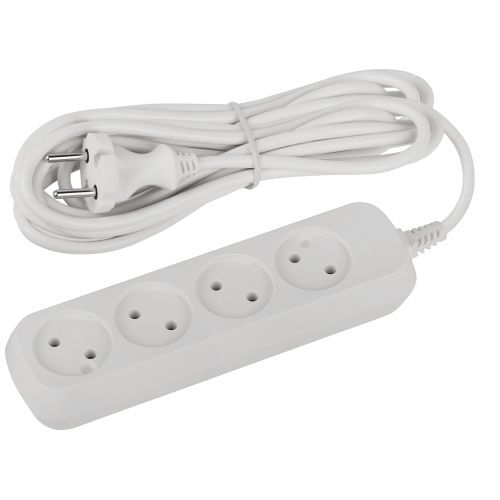 Удлинитель электрический Эра GREENLINE UDL-10-450 без заземления, на 4 розетки, провод 5м ПВС 2x0,75мм2. Рассчитан на максимальную мощность 10А/2200 Вт. Удлинитель станет Вашим надежным помощником, если любимые электроприборы находятся далеко от розеток. Корпус выполнен из ударопрочного и негорючего пластика (полипропилен). Модель удлинителя на 10А позволяет подключать бытовые приборы общей нагрузкой до 2200Вт.