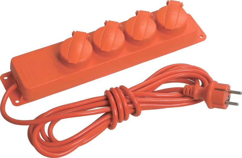 Промышленные удлинители с защитными крышками незаменимы при ремонтных и строительных работах. Яркий цвет изделий привлекает внимание, хорошо заметен в пыли и затемненных местах.
