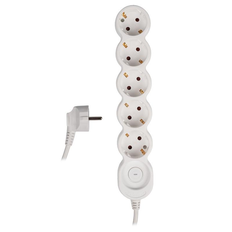 5 гнезда. Длина 1.5 метра. Провод ПВС 3х1мм2 с медной токопроводящей жилой. Ном.сила тока 16 А. Макс.нагрузка 4000 Вт. Заземляющий контакт. Выключатель. Упаковка - термоусадочная пленка с европодвесом.