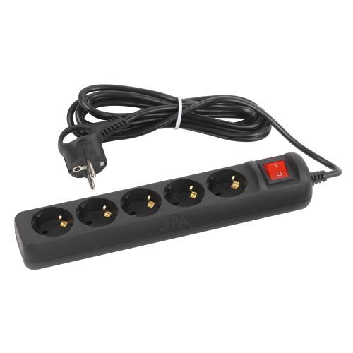 Удлинитель электрический Эра UX-5es-1,5m-B с заземлением, с выключателем черный, 5 розеток. Провод ПВС, 3x0,75мм2, 1,5м. Рассчитан на максимальную мощность 10А/2200 Вт. Удлинитель Эра станет Вашим надежным помощником, если Ваши любимые электроприборы находятся далеко от розеток. Провод в удлинителях Эра сделан из 100% меди, что делает его абсолютно пожаробезопасным. Корпус выполнен из ударопрочного и негорючего пластика (полипропилен). Вилка обеспечена кольцом для удобного извлечения ее из розетки. Модель удлинителя на 10А позволяет подключить бытовые приборы общей нагрузкой до 2200Вт. Дизайн удлинителя разработан в России командой Эра Style.