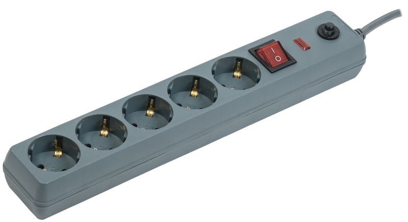 Удлинитель с сетевым фильтром 5х5м 16А IP20 СФ-05К ПВС 3х1 с выкл. сер. IEK WFP10-16-05-05-ZK-K03