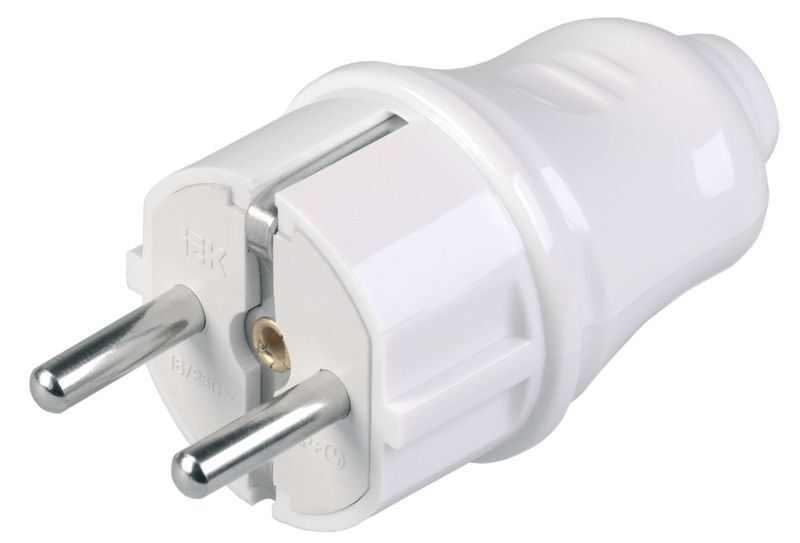 Вилка прямая ВПп10-01-Ст разборная с заземл. контактом 16А бел. IEK EVP10-16-01-K01