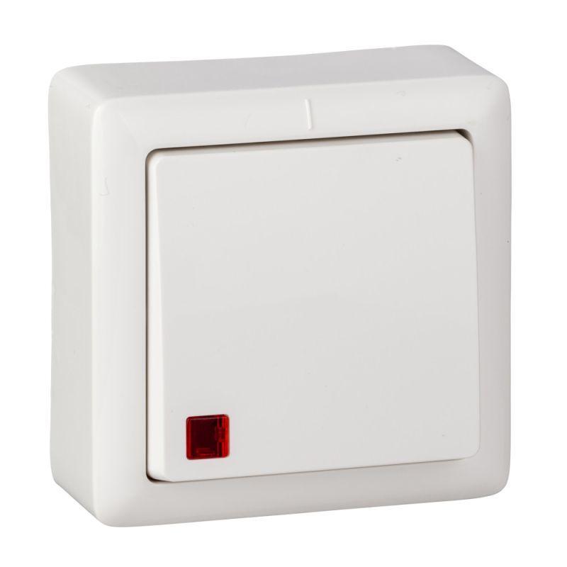 Выключатель 1-кл. ОП Хит 6А IP20 250В с подсветкой бел. SE VA16-137-B