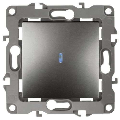 Выключатель 1-клавишный с подсветкой серии Эра 12 скрыт.установки механизм цвет графит 12-1102-12. Номинальные характеристики 10А 250В . Сделан из поликарбоната, оснащёно автоматическими клеммами для быстрй и надёжной фиксации жил кабеля в механиме. Парные клеммы обеспечивают соединение шлейфом. Монтаж в подрозетник производится и на лапки, и на винты. Рамки приобретаются отдельно. Рамки Эра 12: 1 пост 12-5001-хх, 2 поста 12-5002-хх, 3 поста 12-5003-хх, 4 поста 12-5004-хх, 5 постов 12-5005-хх. Рамки Эра 12 Сатин: 1 пост 12-5101-хх, 2 поста 12-5102-хх, 3 поста 12-5103-хх, 4 поста 12-5104-хх, 5 постов - 12-5105-хх (хх - код цвета: 01-белый, 02-слоновая кость, 03-алюминий, 04-шампань, 05-антрацит, 06-чёрный, 07-ольха(белёный дуб-сатин), 08-вишня, 09-дуб, 10-венге, 11-сосна, 21-жёлтый, 22-оранжевый, 23-красный, 24-охра, 25-бордо, 26-лайм, 27-зелёный, 28-голубой, 29-синий).