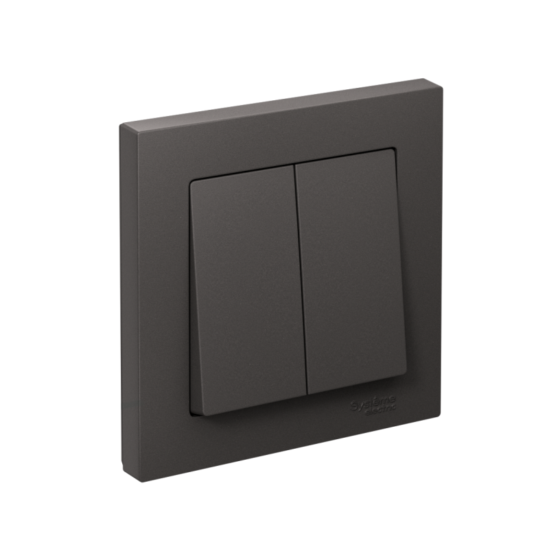 Выключатель в сборе Systeme Electric (ранее Schneider Electric) серии AtlasDesign в цвете базальт 2-клавишный подходит для сетей 250 В, на ток 10 А. Двухклавишный выключатель позволяет управлять двумя источниками света с одной точки. Лицевые детали из качественного ABS-пластика, устойчивого к царапинам и УФ-излучению. Изделие поставляется в комплекте с рамкой того же цвета. Усиленные прямые монтажные лапки для лучшей фиксации механизма в монтажной коробке.