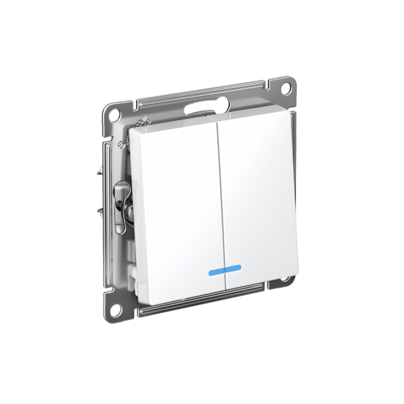 Механизм Systeme Electric (ранее Schneider Electric) серии AtlasDesign в цвете белый выключателя 2-клавишного c подсветкой подходит для сетей 250 В, на ток 10 А. Пластик с ионами серебра в белом цвете обеспечивает антибактериальный эффект. Благодаря светодиодной подсветке синего цвета изделие легко найти в темноте. Двухклавишный выключатель позволяет управлять двумя источниками света с одной точки. Лицевые детали из качественного ABS-пластика, устойчивого к царапинам и УФ-излучению.