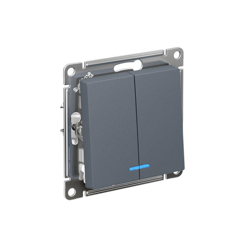 Механизм Systeme Electric (ранее Schneider Electric) серии AtlasDesign в цвете грифель выключателя 2-клавишного c подсветкой подходит для сетей 250 В, на ток 10 А. Благодаря светодиодной подсветке синего цвета изделие легко найти в темноте. Двухклавишный выключатель позволяет управлять двумя источниками света с одной точки. Лицевые детали из качественного ABS-пластика, устойчивого к царапинам и УФ-излучению.