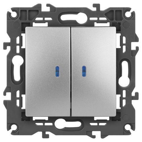 Выключатель 2-кл. СП Elegance 14-1105-03 10А IP20 250В 10AX с подсветкой механизм алюм. Эра Б0034239