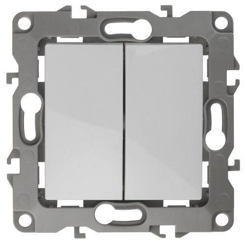 Выключатель 2-клавишный серии Эра 12 скрытой установки механизм цвет белый 12-1104-01. Номинальные характеристики 10А 250В . Сделан из поликарбоната, оснащёно автоматическими клеммами для быстрй и надёжной фиксации жил кабеля в механиме. Парные клеммы обеспечивают соединение шлейфом. Монтаж в подрозетник производится и на лапки, и на винты. Рамки приобретаются отдельно. Рамки Эра 12: 1 пост 12-5001-хх, 2 поста 12-5002-хх, 3 поста 12-5003-хх, 4 поста 12-5004-хх, 5 постов 12-5005-хх. Рамки Эра 12 Сатин: 1 пост 12-5101-хх, 2 поста 12-5102-хх, 3 поста 12-5103-хх, 4 поста 12-5104-хх, 5 постов - 12-5105-хх (хх - код цвета: 01-белый, 02-слоновая кость, 03-алюминий, 04-шампань, 05-антрацит, 06-чёрный, 07-ольха(белёный дуб-сатин), 08-вишня, 09-дуб, 10-венге, 11-сосна, 21-жёлтый, 22-оранжевый, 23-красный, 24-охра, 25-бордо, 26-лайм, 27-зелёный, 28-голубой, 29-синий).