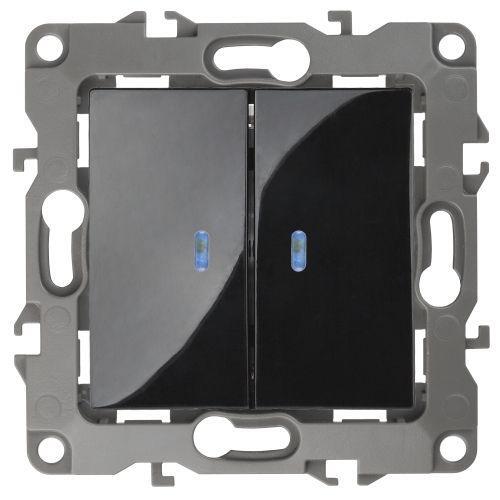 Выключатель двойной с подсветкой, 10АХ-250В, Эра12, чёрный