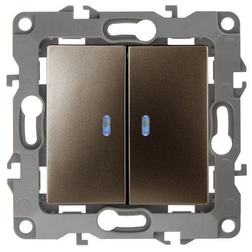 Выключатель 2-кл. СП Эра12 12-1105-13 10А IP20 250В 10AX с подсветкой механизм бронз. Эра Б0019292