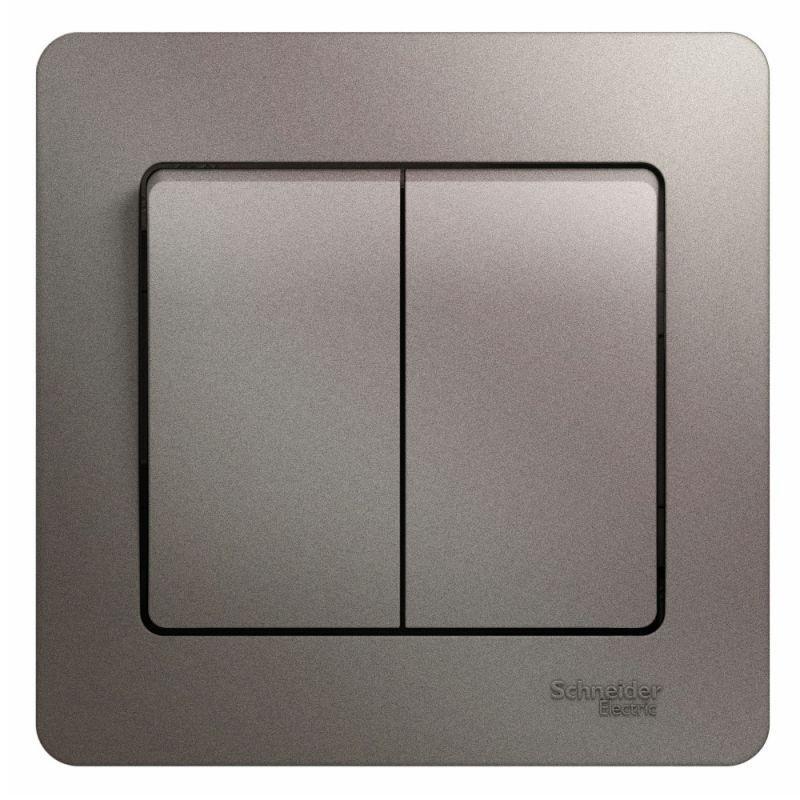 Выключатель Systeme Electric (ранее Schneider Electric) серии Glossa (в сборе, цвет платина) двухклавишный подходит для сетей 250 В, на ток 10 А. Двухклавишный выключатель позволяет управлять двумя источниками света с одной точки. Выполнен из материала PС+ASA, стойкого к УФ-излучению и появлению царапин. Эргономичные клеммы расположены в два ряда: сверху и снизу.