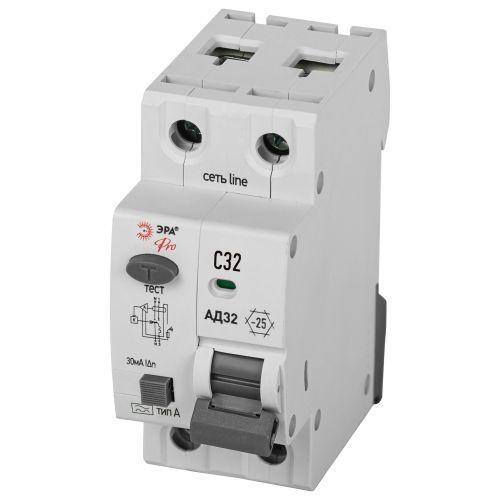 Выключатель автоматический дифференциального тока 1P+N C 32А 30мА тип А АВДТ 4.5кА PRO D32E2C32А30 АД32 электронное Эра Б0057391
