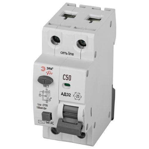 Выключатель автоматический дифференциального тока 1P+N C 50А 100мА тип AC защита 230В АВДТ 4.5кА PRO D32E2C50AC100P АД32 электронное Эра Б0057361