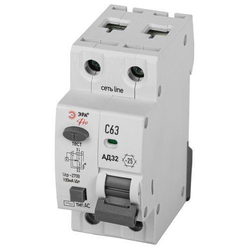 Выключатель автоматический дифференциального тока 1P+N C 63А 100мА тип AC защита 230В АВДТ 4.5кА PRO D32E2C63AC100P АД32 электронное Эра Б0057358