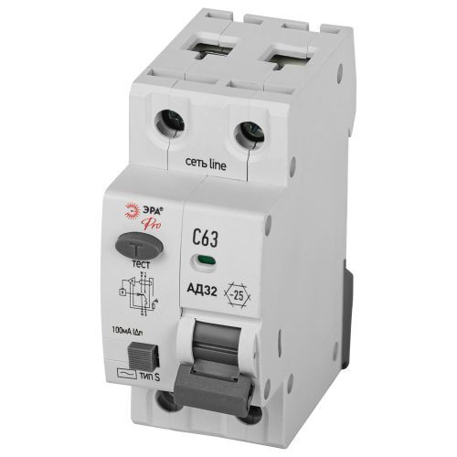 Выключатель автоматический дифференциального тока 1P+N C 63А 100мА тип S АВДТ 4.5кА PRO D32E2C63S100 АД32 электронное Эра Б0057538