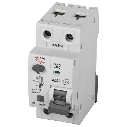 Выключатель автоматический дифференциального тока 1P+N C 63А 30мА тип AC защита 230В АВДТ 4.5кА PRO D32E2C63AC30P АД32 электронное Эра Б0057366