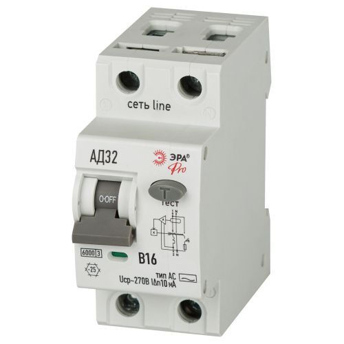 Выключатель автоматический дифференциального тока 2п (1P+N) B 16А 10мА тип AC 6кА АД-32 электрон. защита 230В PRO D326E2B16AC10P Эра Б0059137
