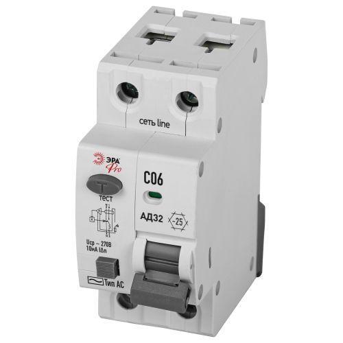 Выключатель автоматический дифференциального тока 2п (1P+N) C 06А 10мА тип AC 4.5кА АД-32 электрон. защита 230В PRO D32E2C06AC10P Эра Б0057384