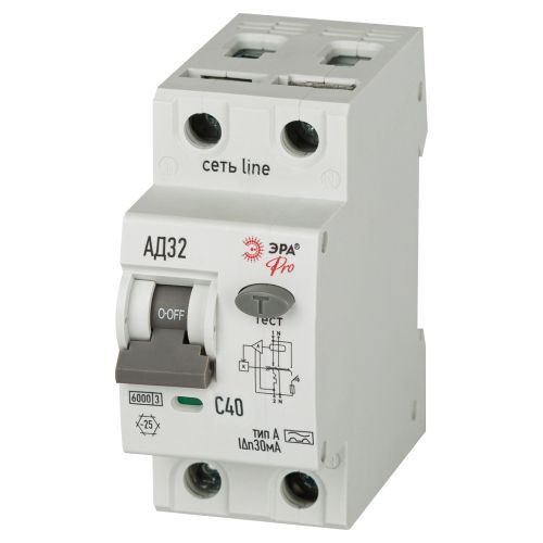 Выключатель автоматический дифференциального тока 2п (1P+N) C 40А 30мА тип A 6кА АД-32 электрон. PRO D326E2C40A30 Эра Б0059201