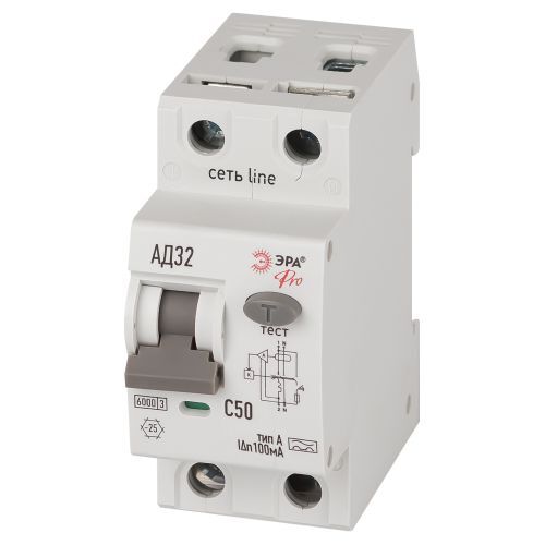 Выключатель автоматический дифференциального тока 2п (1P+N) C 50А 100мА тип A 6кА АД-32 электрон. PRO D326E2C50A100 Эра Б0059203