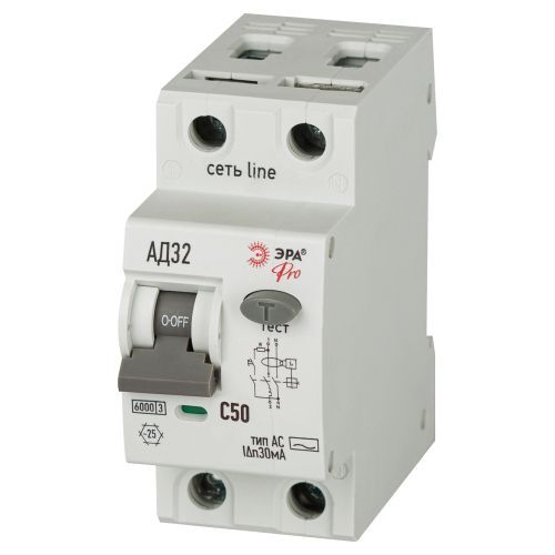 Выключатель автоматический дифференциального тока 2п (1P+N) C 50А 30мА тип AC 6кА АД-32 электромехан. PRO D326M2C50AC30 Эра Б0059130