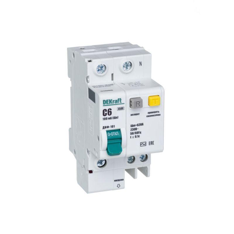 Выключатель автоматический дифференциального тока 2п (1P+N) C 6А 100мА тип AC ДИФ-101 со встроен. защит. от сверхтоков DEKraft 15200DEK