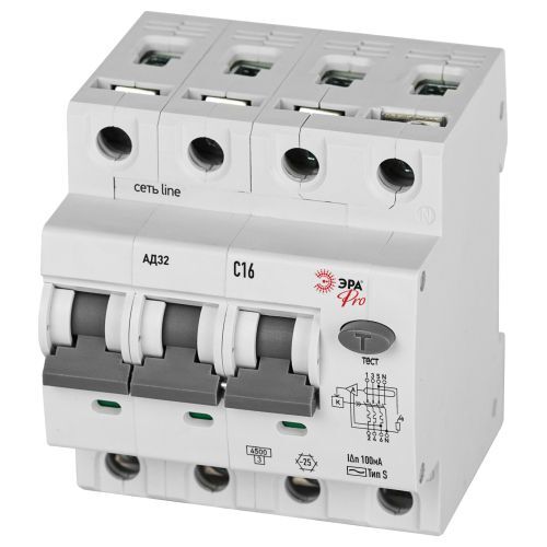 Выключатель автоматический дифференциального тока 4п (3P+N) C 16А 100мА тип S 4.5кА АД-32 электрон. PRO D32E4C16S100 Эра Б0057831