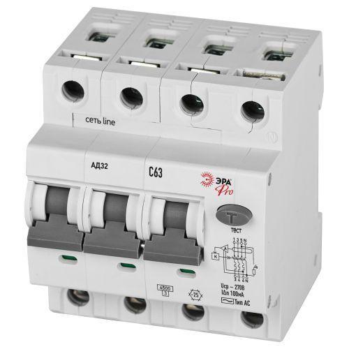 Выключатель автоматический дифференциального тока 4п (3P+N) C 63А 100мА тип AC 4.5кА АД-32 электрон. защита 230В PRO D32E4C63AC100P Эра Б0057804