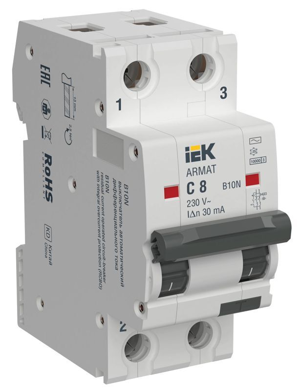 Выключатель автоматический дифференциального тока ARMAT B10N 2P C8 30мА тип AC IEK AR-B10N-2-C008C030