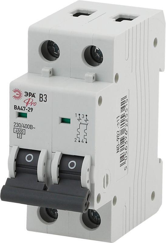 Выключатель автоматический модульный 2п B 3А 4.5кА ВА47-29 PRO NO-902-311 ЭРА Б0048776