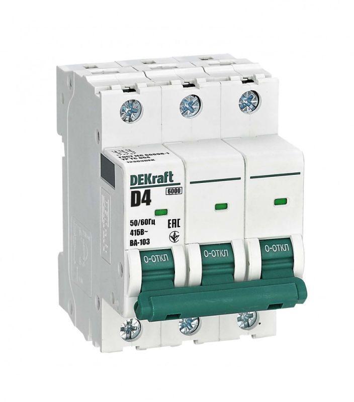 Выключатель автоматический модульный 3п D 4А 6кА ВА-103 DEKraft 12363DEK
