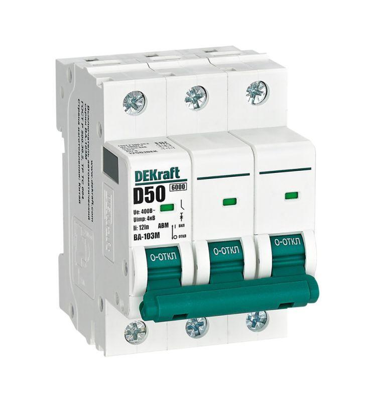 Выключатель автоматический модульный 3п D 50А 6кА ВА-103M без теплозащиты DEKraft 12561DEK