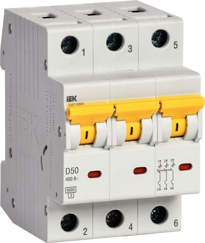 Выключатель автоматический модульный 3п D 50А 6кА ВА47-60МА без тепл. расцеп. KARAT IEK MVA33-3-050-D