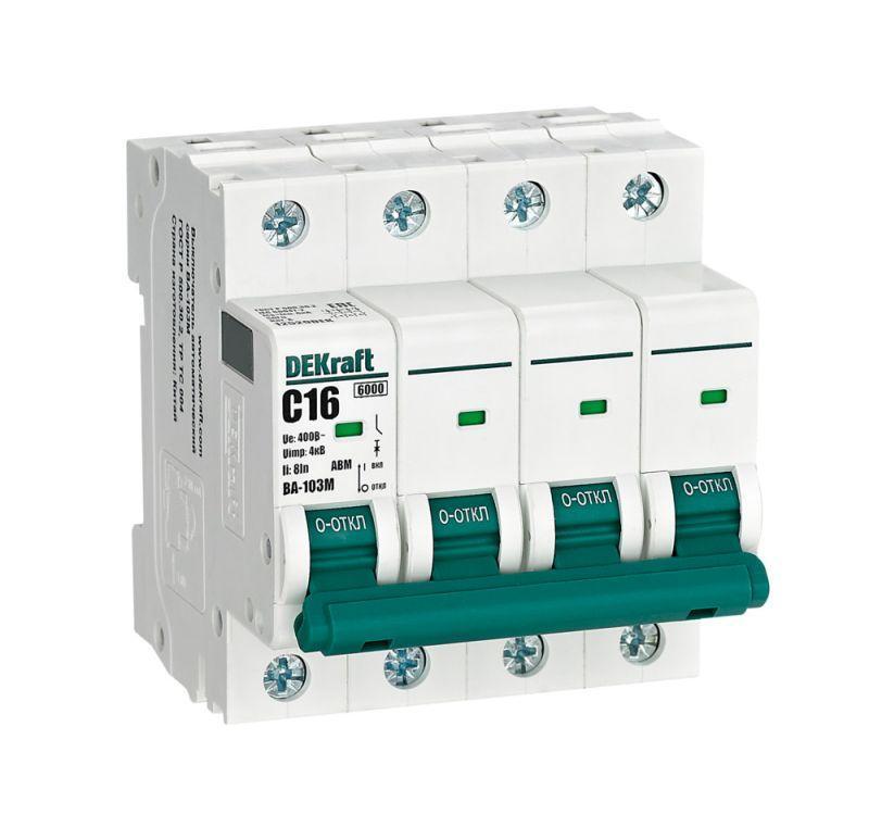 Выключатель автоматический модульный 4п C 16А 6кА ВА-103M без теплозащиты DEKraft 12529DEK
