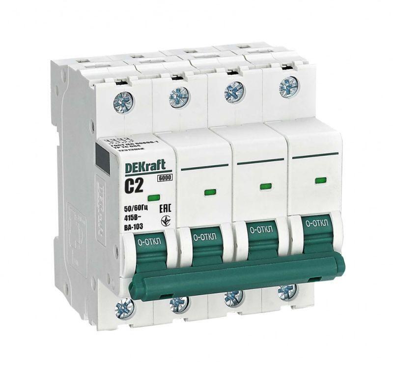 Автоматический выключатель серии ВА-103 NEW Dekraft; 4P; номинальный ток 2 А; характеристика C; отключающая способность 6 кА, что позволяет использовать аппараты в качестве вводных. 5 монолитных заклепок повышают прочность корпуса аппарата. Окошко-индикатор всегда показывает состояние контактов вне зависимости от положения рукоятки управления. Боковые каналы охлаждения повышают стабильность работы при высоких температурах окружающей среды. Есть возможность установки дополнительных аксессуаров с левой стороны устройства. Аппарат на 100% совместим с корпусами и оболочками Dekraft, Systeme Electric.
