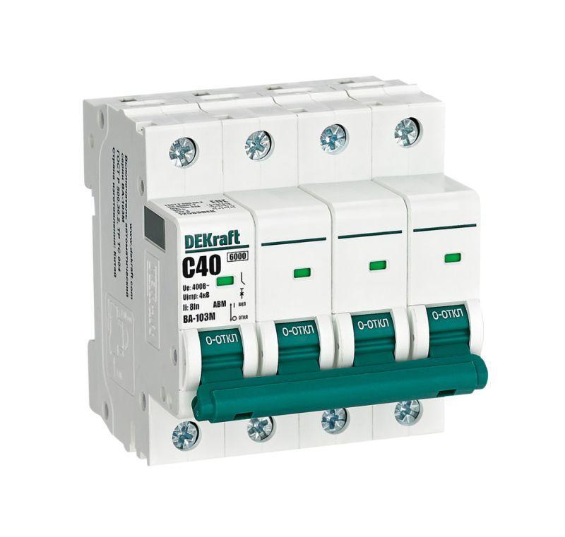 Выключатель автоматический модульный 4п C 40А 6кА ВА-103M без теплозащиты DEKraft 12533DEK