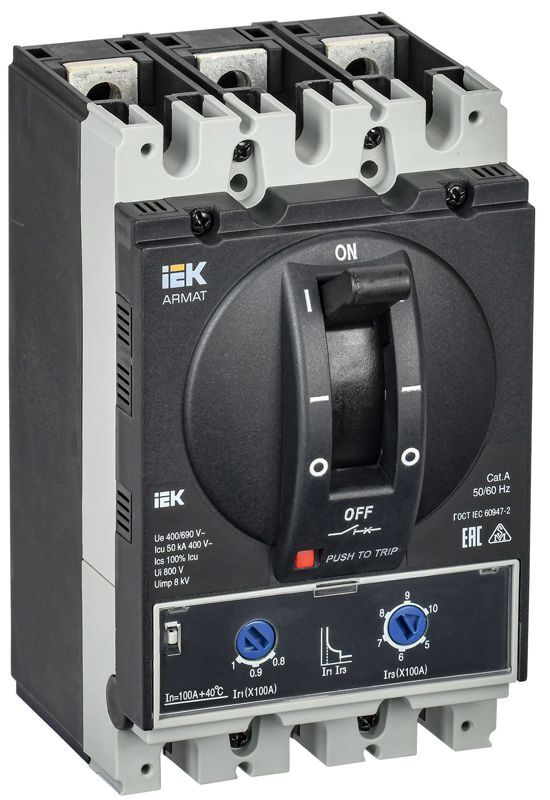 Выключатель автоматический в литом корпусе 3п A 50кА 100А расцепитель термомагнитный регулируемый ARMAT IEK AR-MCCB-3A-050-0100A-ATUC