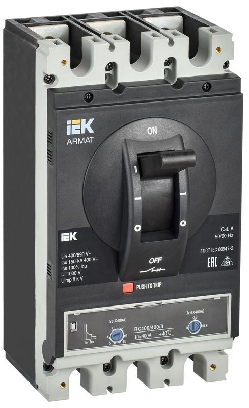 Выключатель автоматический в литом корпусе 3п H 150кА 400А расцепитель термомагнитный регулируемый ARMAT IEK AR-MCCB-3H-150-0400A-ATUC