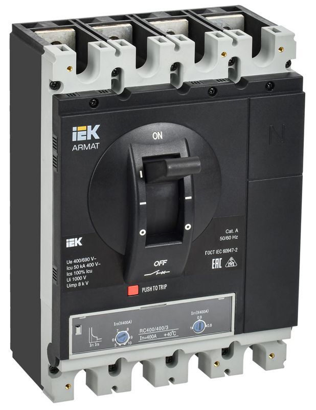 Выключатель автоматический в литом корпусе 4п H 50кА 400А расцепитель термомагнитный регулируемый ARMAT IEK AR-MCCB-4H-050-0400A-ATUC