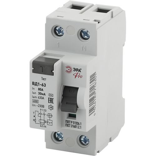 Выключатель дифференциального тока (УЗО) 1P+N 80А 30мА ВД1-63 Pro NO-902-55 ЭРА Б0031894